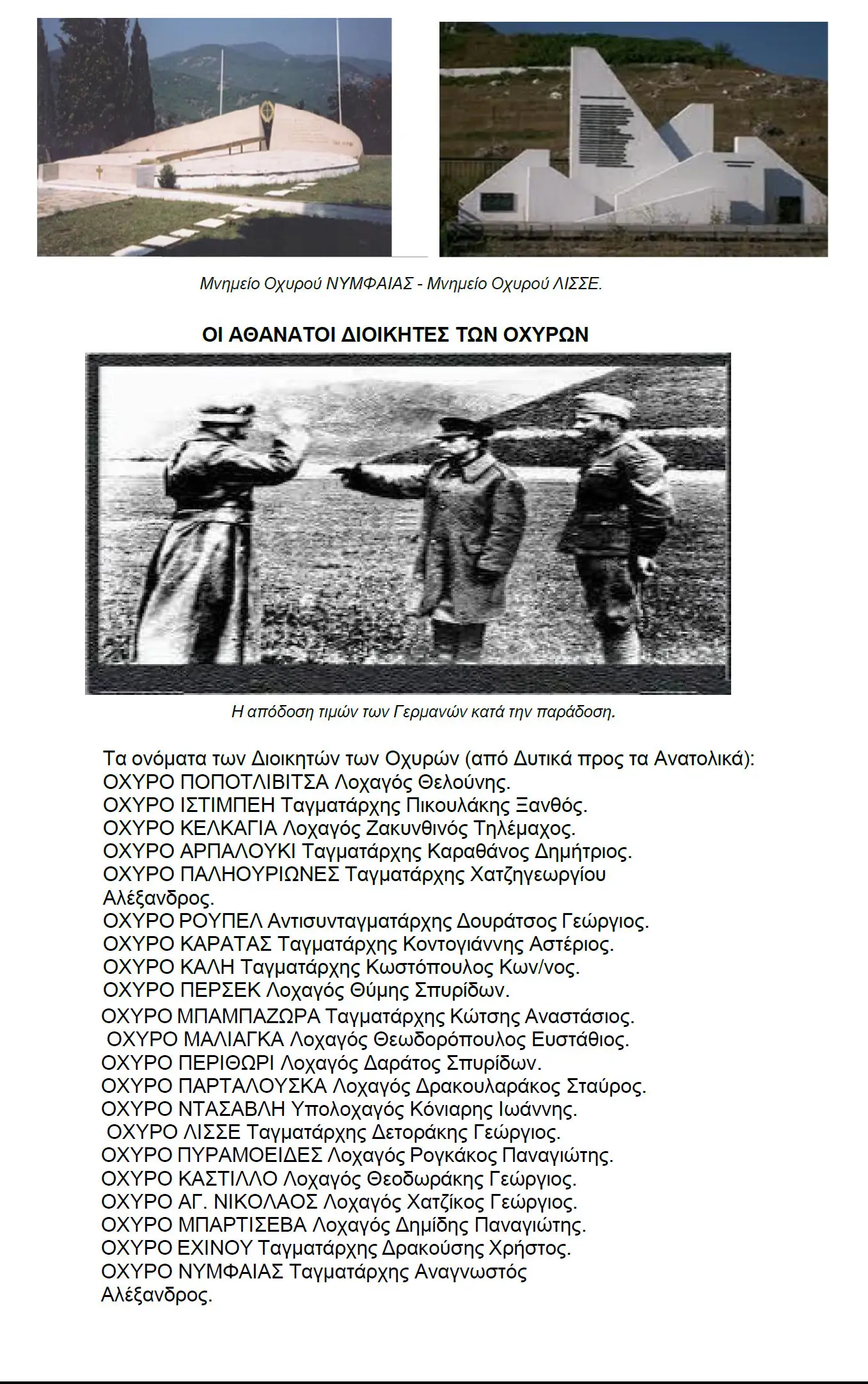 «Το έργο περιελάμβανε 21 οχυρές θέσεις, διαθέτοντας μεγάλο πλήθος οπό οχυρά, εκατοντάδες μέτρα από υπόγεια και προστατευτικά έργα, καθώς και ισχυρή επιμελητεία».
