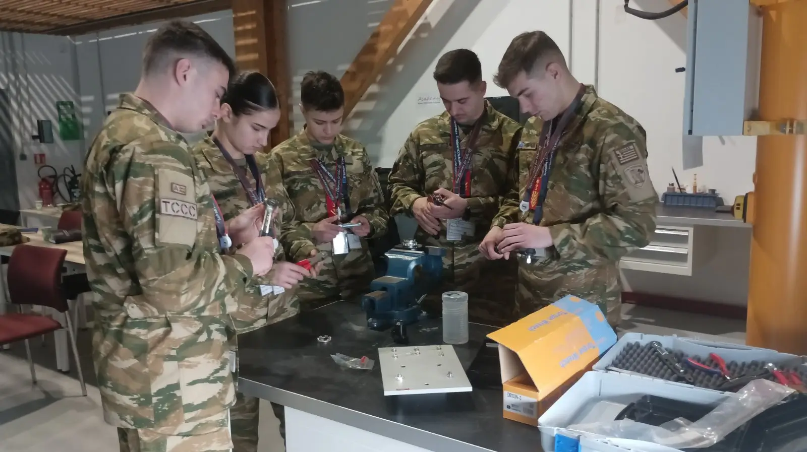 Από 09 έως 18 Φεβρουαρίου 2026, στο πλαίσιο συμμετοχής στο πρόγραμμα Erasmus+ της Ευρωπαϊκής Ένωσης στον τομέα Επαγγελματικής Εκπαίδευσης και Κατάρτισης, πραγματοποιήθηκε επίσκεψη αντιπροσωπείας 10 Σπουδαστών και 1 Αξιωματικού της Σχολής Μονίμων Υπαξιωματικών (ΣΜΥ), στις εγκαταστάσεις της εταιρείας Safran Helicopter Engines στην πόλη Tarnos της Γαλλίας.