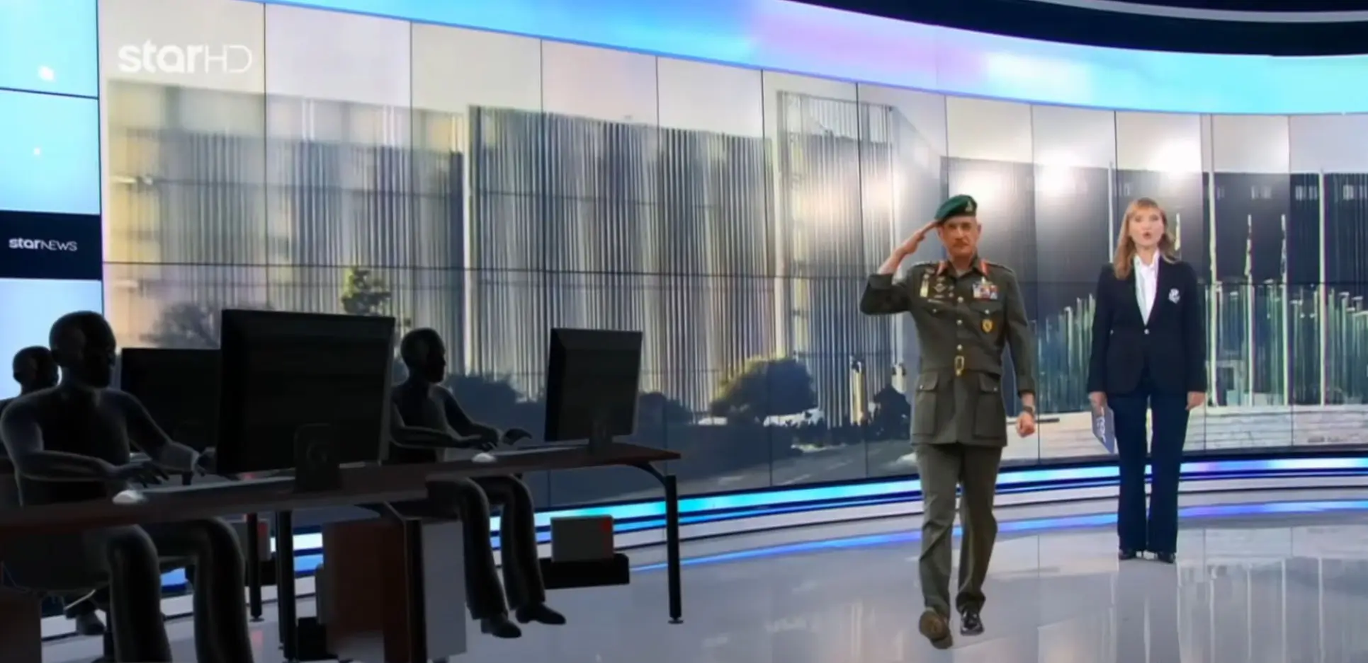 Για πρώτη φορά, κατά την πρόσφατη περίοδο, κάμερα μπαίνει στα άδυτα του Υπουργείου Εθνικής Αμύνης και δείχνει εικόνες του Εθνικού Κέντρου Επιχειρήσεων, του Διακλαδικού Κέντρου Πληροφοριών, της Διοίκησης Ειδικού Πολέμου. Εκεί όπου σε πραγματικό χρόνο οι επιτελείς του Πενταγώνου παρακολουθούν οτιδήποτε συμβαίνει στην πατρίδα μας σε στεριά, αέρα και θάλασσα επτά ημέρες την εβδομάδα, 24 ώρες το εικοσιτετράωρο.